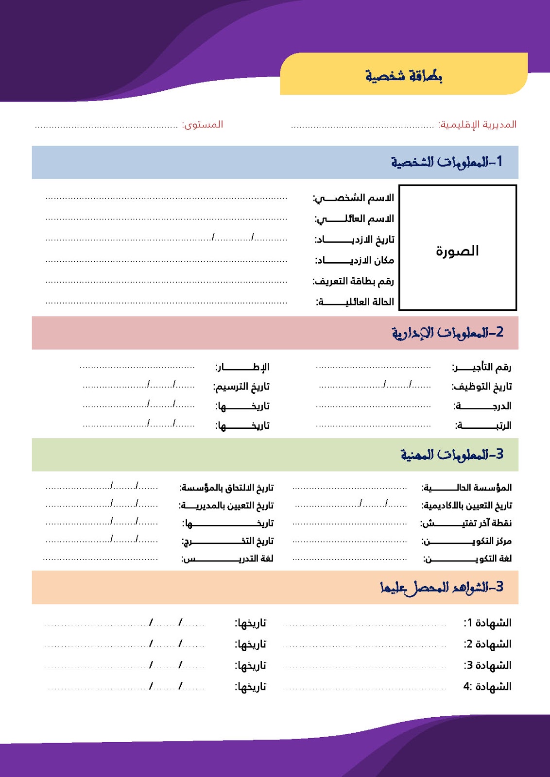 بطاقة معلومات الأستاذ بحلة جديدة ومتميزة