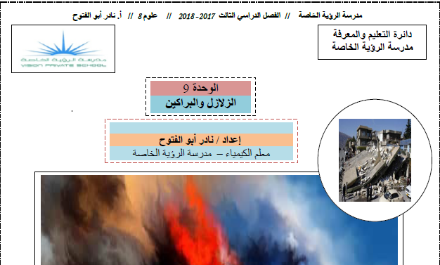 تلخيص شامل لدرس الزلازل والبراكين لمادة العلوم الصف الثامن الفصل الثالث 2018 منتديات صقر الجنوب