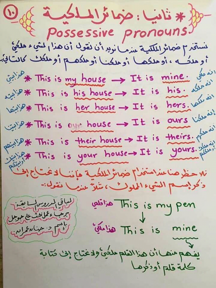 درس ضمائر الملكية فى اللغة الانجليزية للمبتدئين Possessive Pronouns In English Language